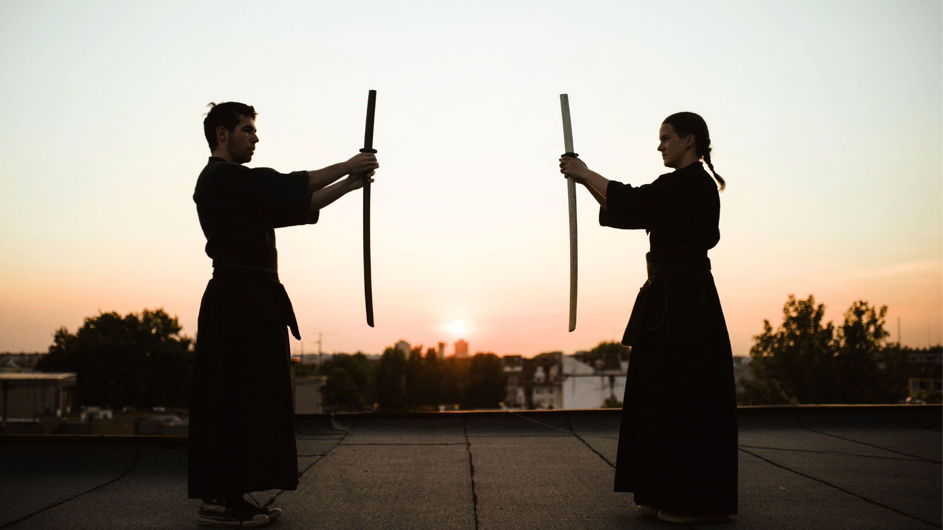 - Des jeux sensoriels martiaux non agressifs, à mains nues ou avec sabre, bâton, poignard en bois.