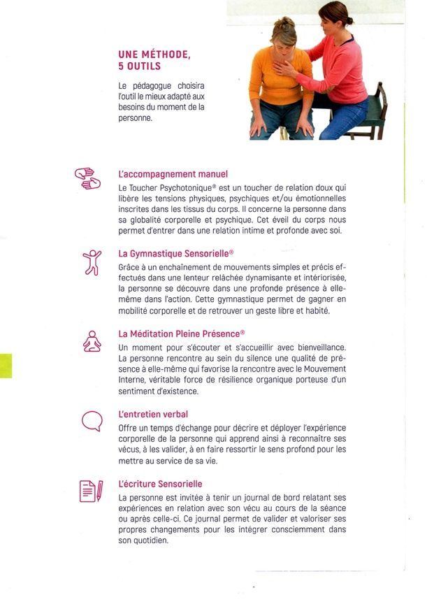 - Un accordage manuel et gestuel du corps / psychisme / émotion via l'adaptation du tonus.